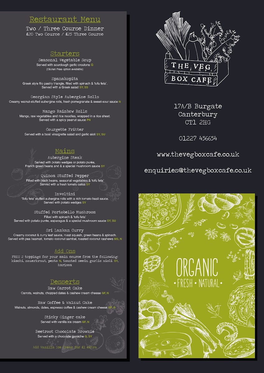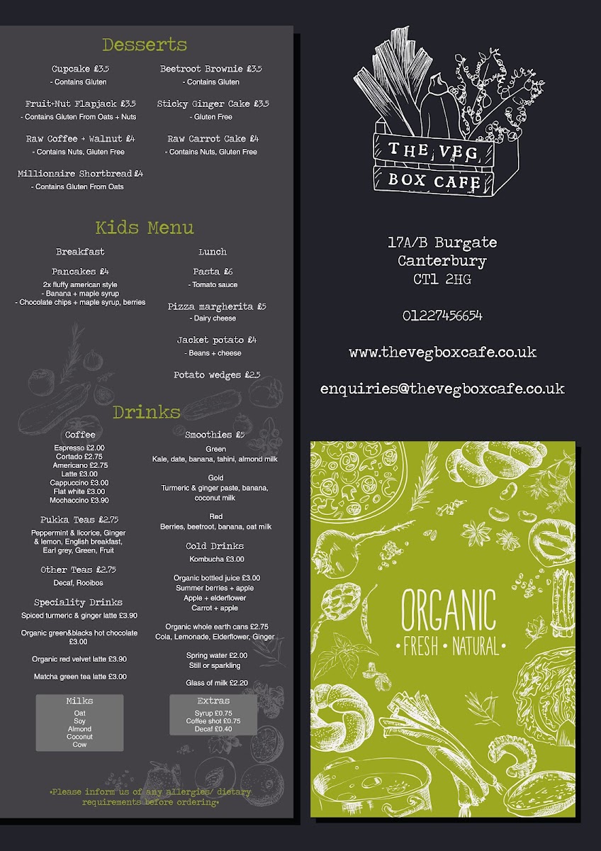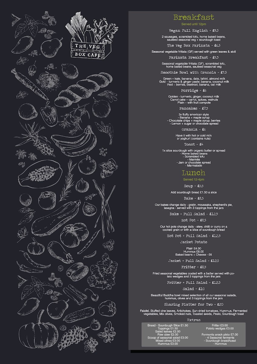 The Veg Box Cafe Menu